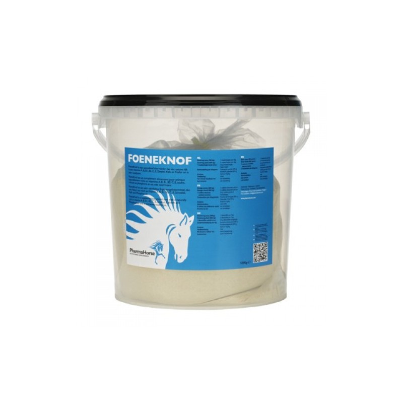 Een uitgebalanceerde mix van Foenegriek en Knoflook. Foeneknof is een aanvullend diervoeder, dat van nature rijk is aan Vitamine A, B1, B2, B6, organisch zwavel en diverse mineralen. Deze veel gebruikte combinatie ondersteunt de gezondheid van uw paard en pony.